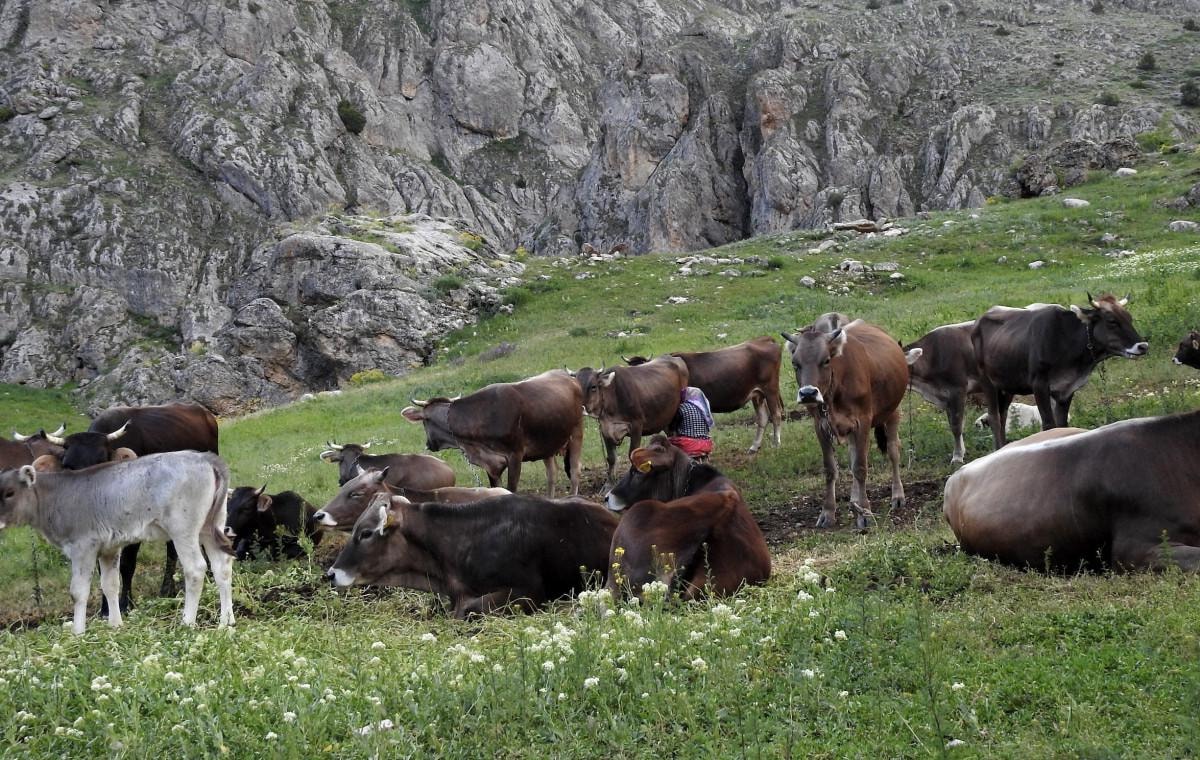 Kendi aralarında sıra sistemi kuran köylüler, hayvanlarını meralarda otlatıyor.