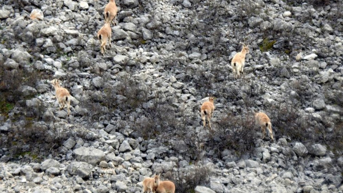 Erzincan’da koruma altındaki dağ keçileri, zaman zaman yüksek noktalardan köylere yakın noktalarına kadar iniyor.