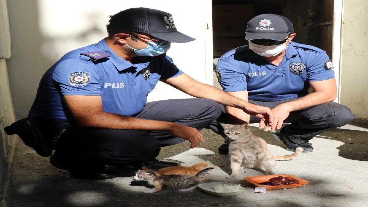 Polislerin hayvan sevgisi vatandaşların da takdirini topladı.
