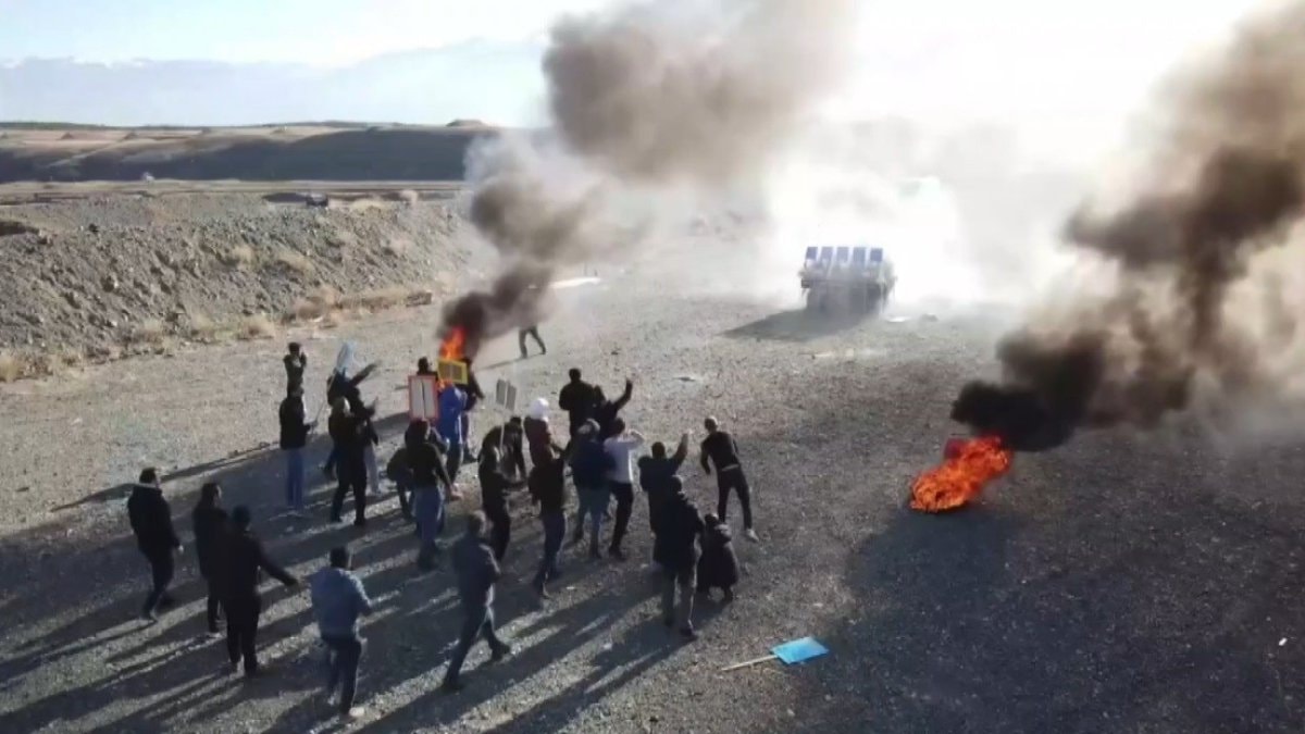 Tatbikatta eylemciler tarafından yakılan ateşler, TOMA tarafından söndürüldü.