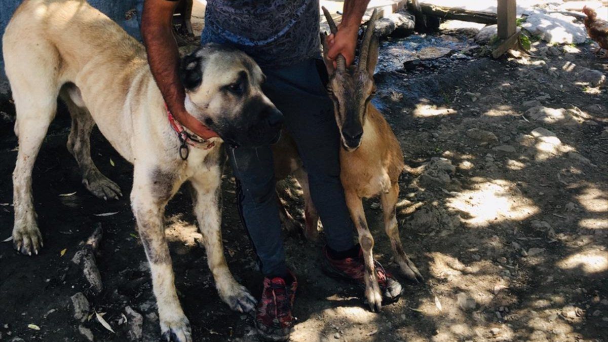 Erzincan'da kurdun saldırdığı yaban keçisini kangal köpeği kurtardı