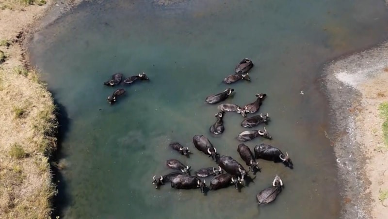 Kent merkezine birkaç kilometre uzaklıktaki Akyazı Mahallesi'nde mandaların doğal ortamında beslenmeleri sonrası dere içinde geçirdikleri keyifli dakikalar, Tanzanya'nın Serengeti Milli Parkı'nı akıllara getiriyor. Sıcaktan bunalan mandalar saatlerce sudan çıkmıyor.
