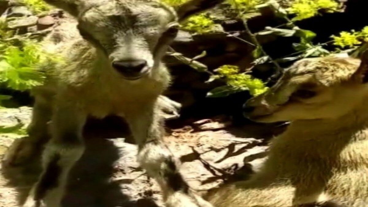Yaban hayatıyla zenginlik içeren Erzincan’ın Kemah ilçesi dağlarında, anneleri tarafından kısa süreliğine terk edilen iki yavru dağ keçisine rastlayan adamın mutluluğu, cep telefonu kamerasına yansıdı.