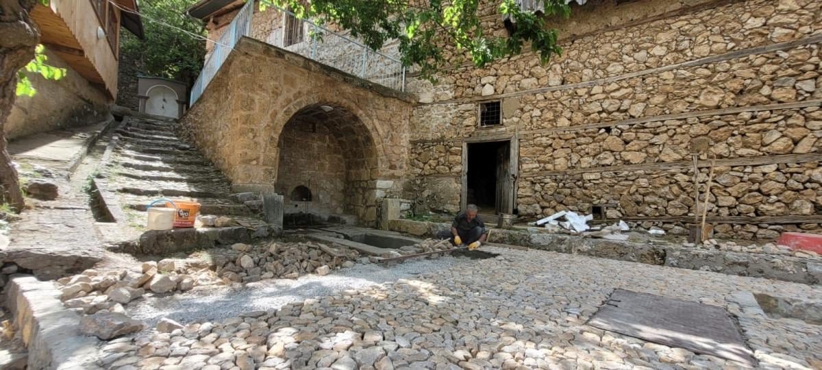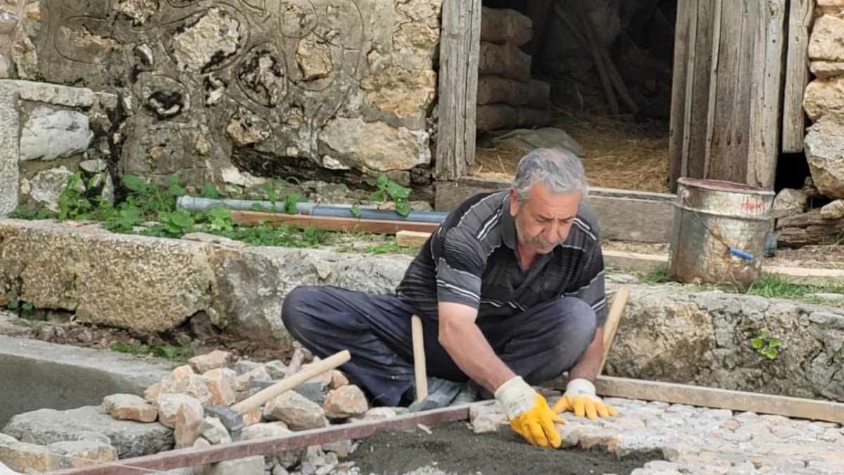 Çocukluktan itibaren taş işçiliği yapan Olgunöz, ilçede sokak yollarını, ihtiyaç duyulan alanları taşlarla döşüyor.