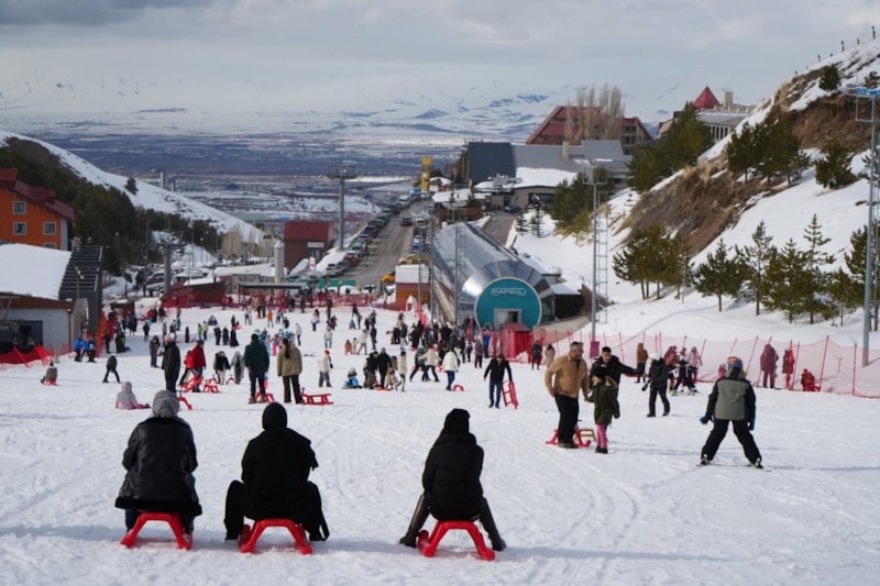 Şehir dışından ve yurt dışından gelen binlerce turist, güneşli hava eşliğinde kayak yapmanın tadını çıkarıyor. Kayak ile birlikte özellikle çocuklar kızaklarıyla keyifli anlar yaşıyor.