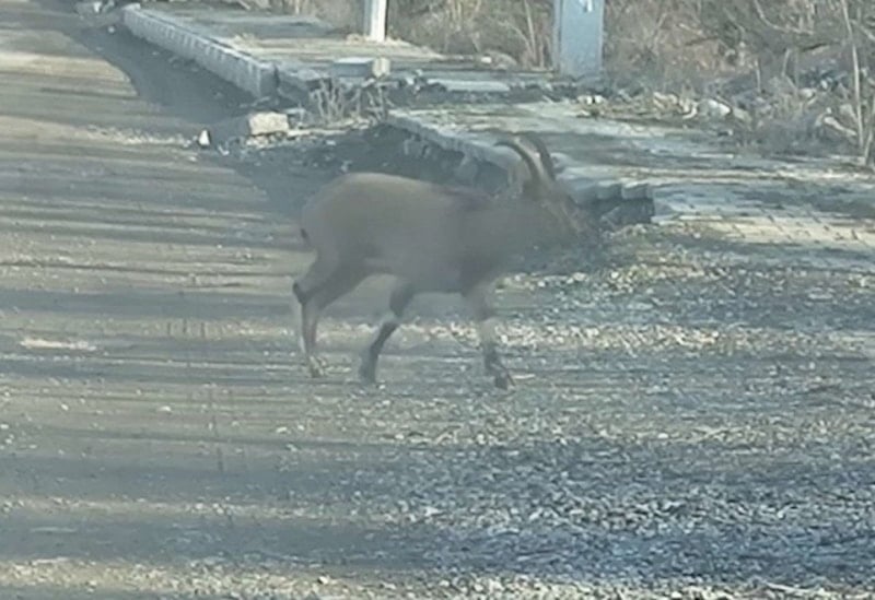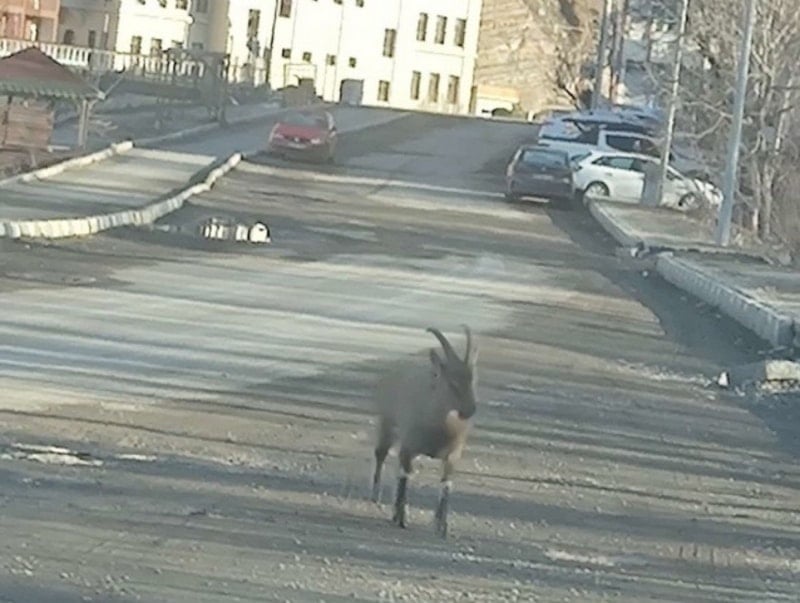İşlerine gitmek için sokağa çıkan ilçe sakinleri, bina önünde dağ keçisini görünce kısa süreli şaşkınlık yaşadı.