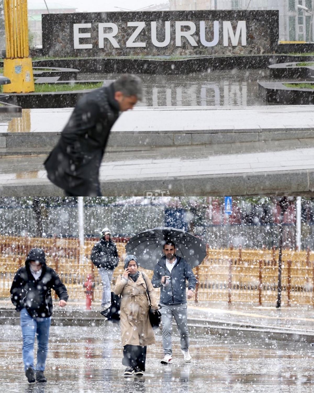 Karı ve soğuğu ile meşhur olan Erzurum'da mayıs ayında yağan kar, vatandaşları şaşırtmadı.