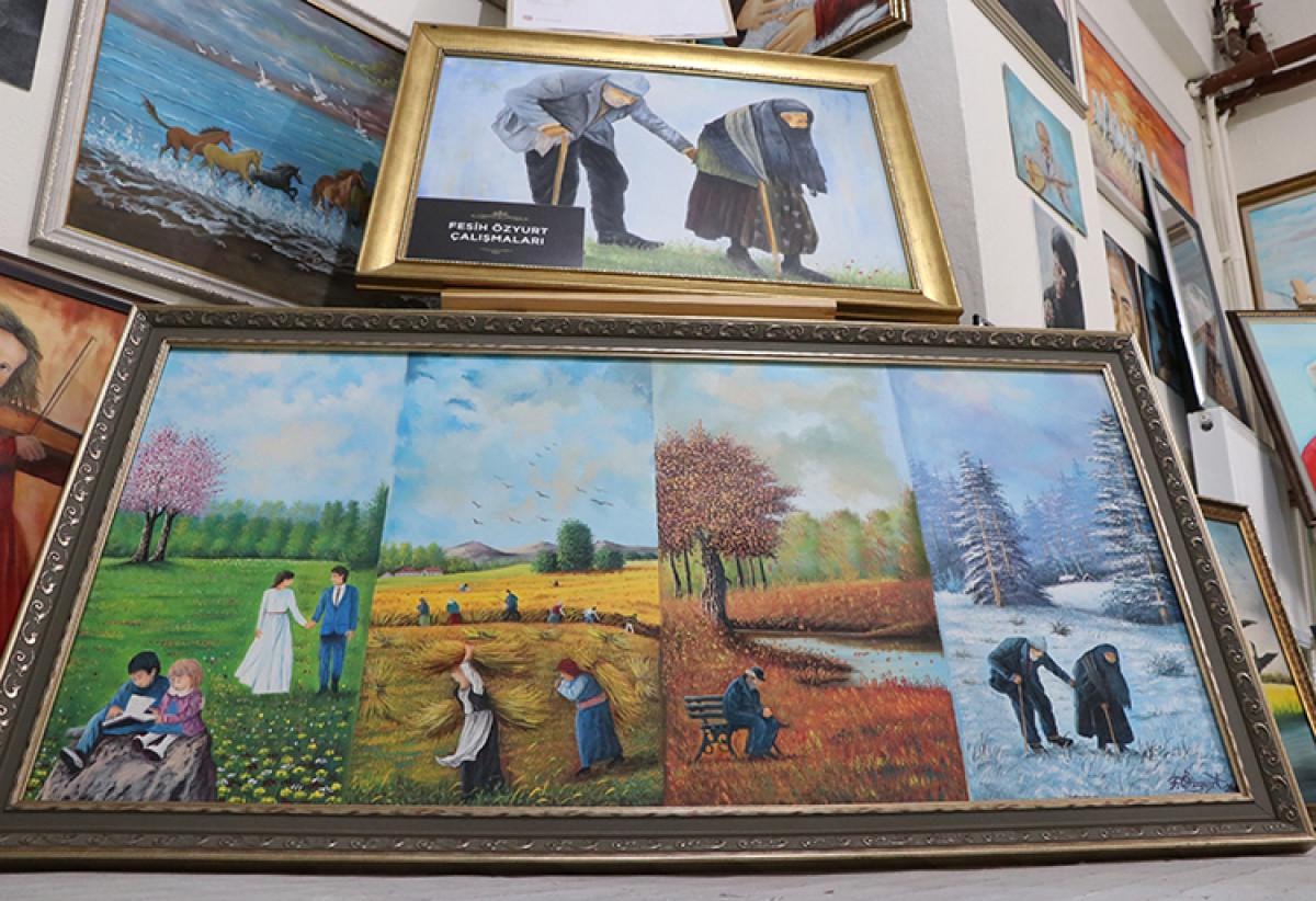Ressam Özyurt, AA muhabirine, ortaokulda yatılı okuduğu yıllarda ailesine olan hasretini resim çizerek giderdiğini söyledi.