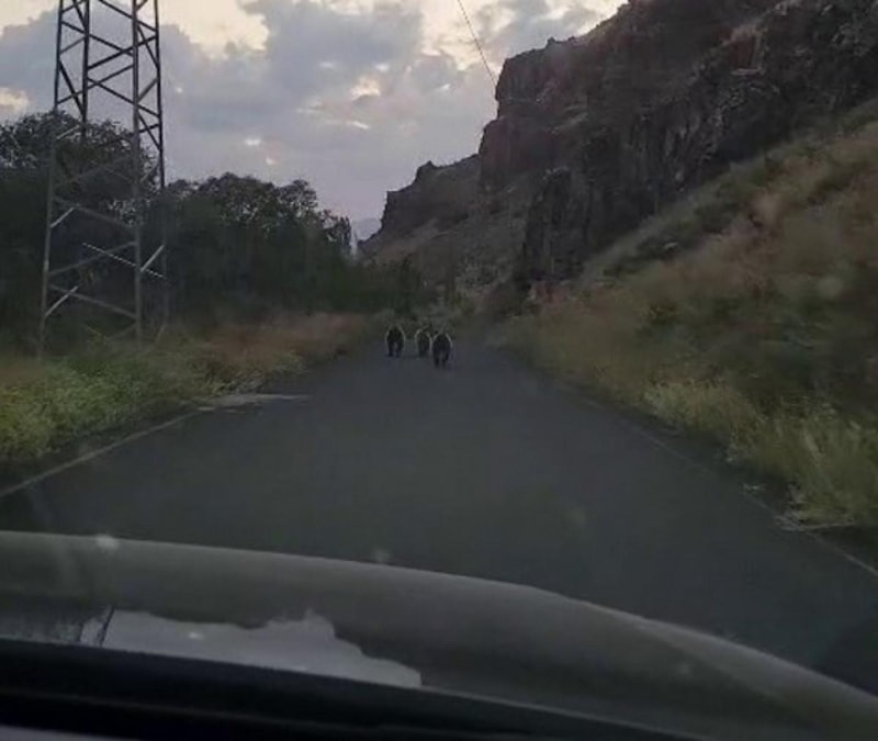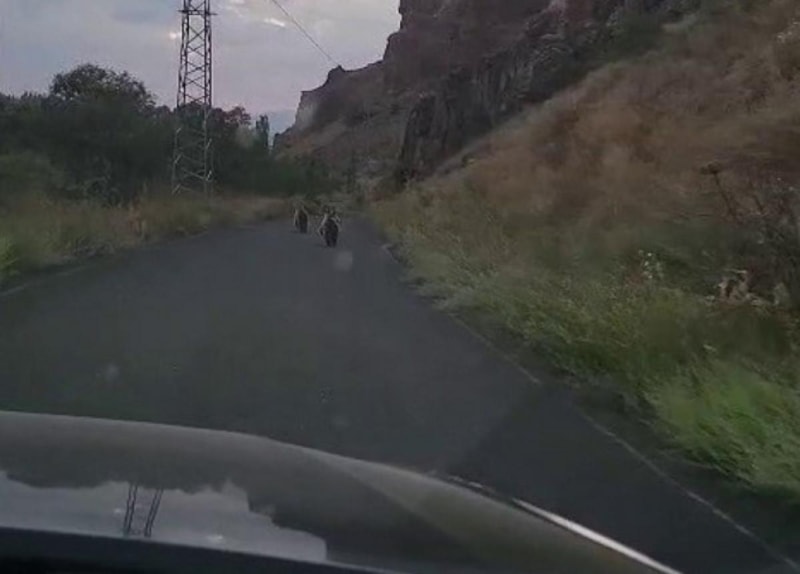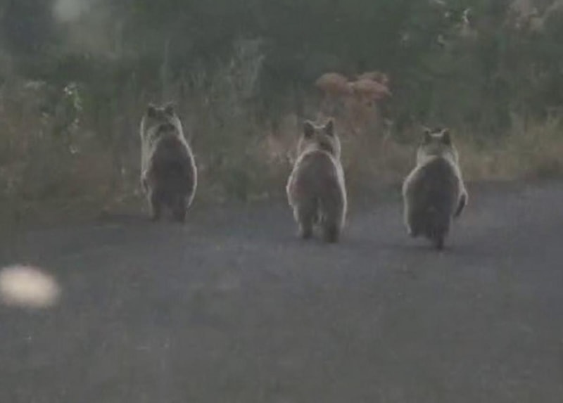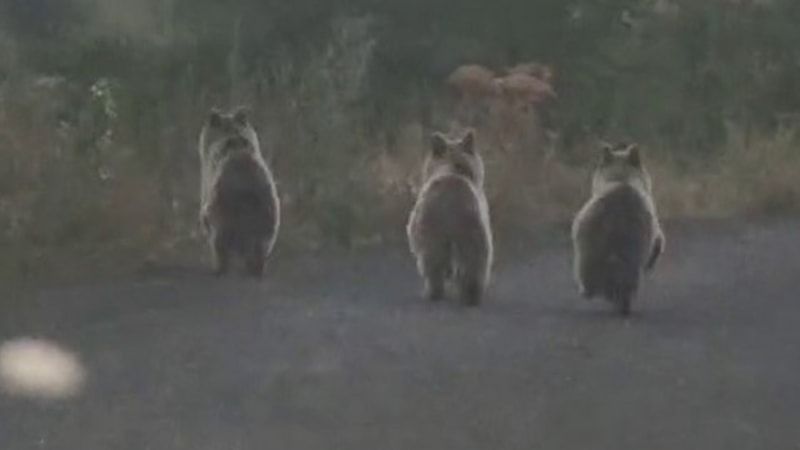 Üç yavru ayı bir süre aracın önünde ilerledikten sonra araziye yönelip gözden kayboldu.