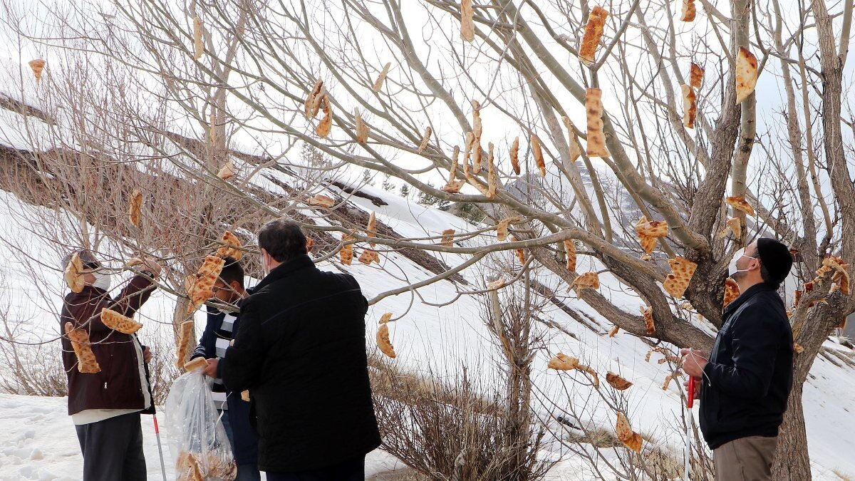 Üyeler, ağacın tüm dallarını ekmekle donattıktan sonra birbirlerine destek olarak, karlı ve engebeli yolları aşıp, araçlarına ulaşmalarının ardından bölgeden ayrıldı.