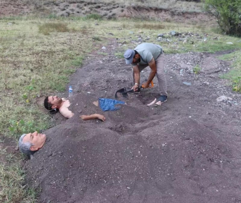 Erzurumda şifa aralanlar, yıllardır havaların en fazla ısındığı ağustos ayında Ejder Deresi'nin sıcak kumlarına kendilerini gömüyor.