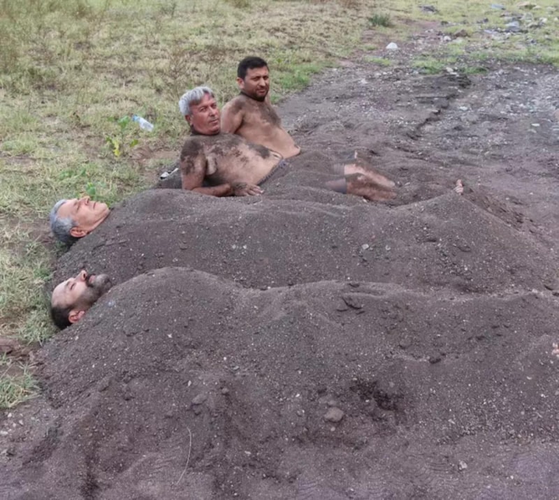 Yarım saat süreyle kum içerisinde kalan vatandaşlar, bunu doktor tavsiyesine göre birkaç kez uyguluyor.