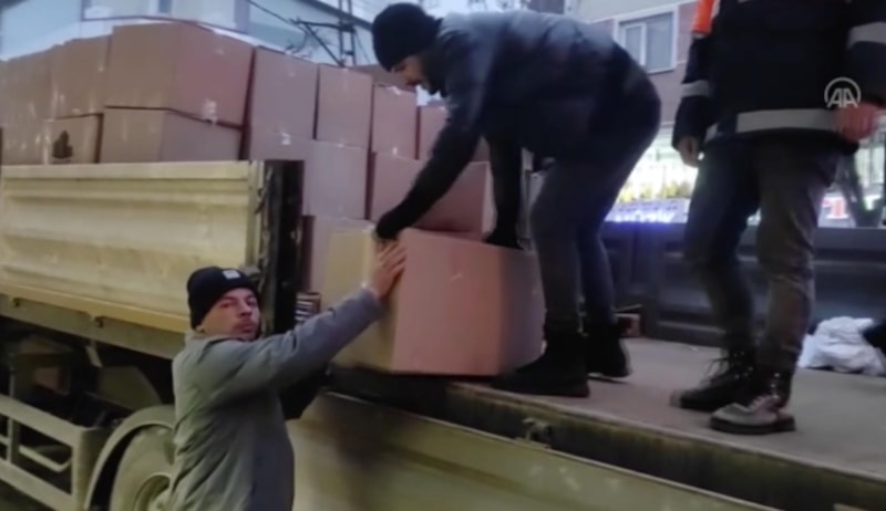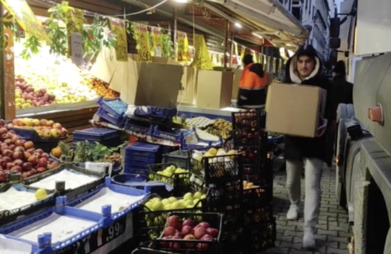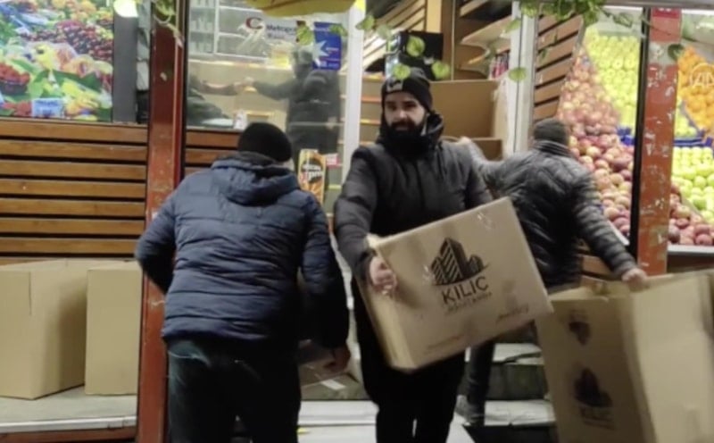 Esenyurt'ta iki market sahibi Adem Kılıç, dayanışma için marketteki tüm ürünlerini tırlara yükleyerek deprem bölgesine yolladı.