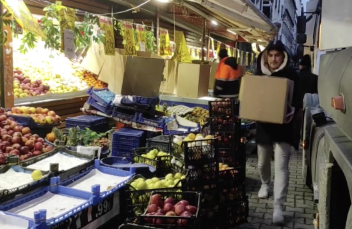 Esenyurt Hacı Bayram Veli Caddesi ile Ufuk Caddesi'nde iki marketi bulunan Adem Kılıç, tüm ürünlerini deprem bölgesine yollamak üzere tırlara yükledi. A