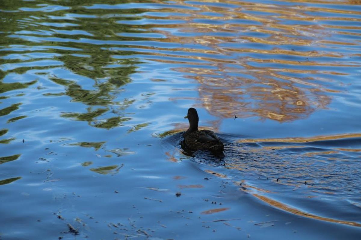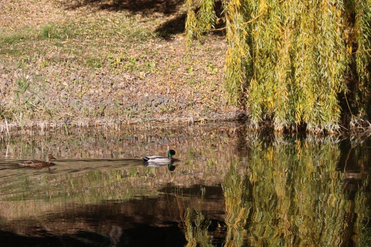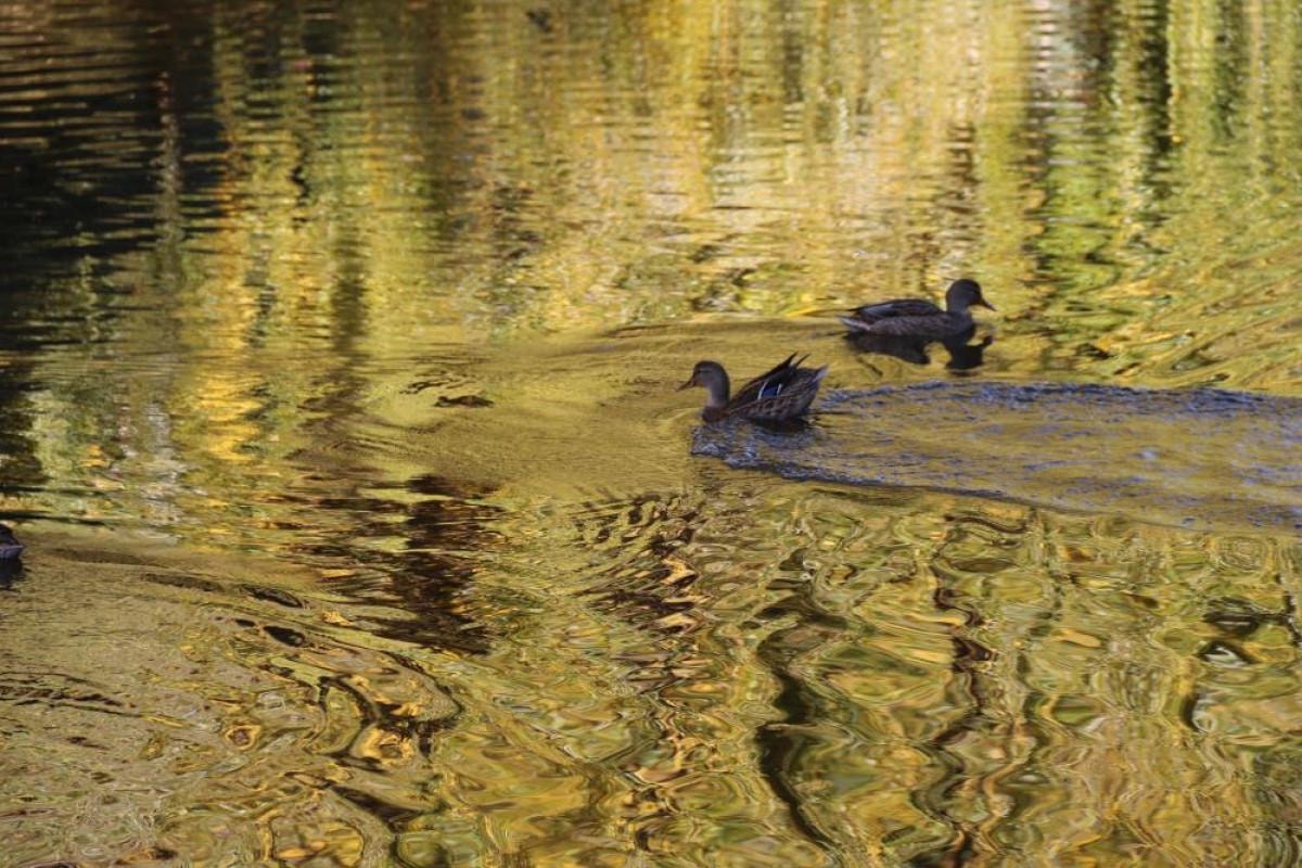 Sonbahar renklerinin büründüğü Porsuk Çayı'nda yeşilbaşların ve diğer ördeklerin keyifle yüzdüğü görüldü. Ördeklerin zaman zaman su kenarından, bazen de uçarak Porsuk'a girdiği gözlendi.