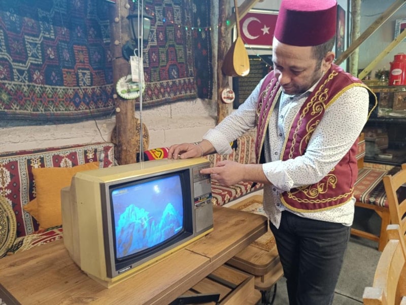 Tarihi Odunpazarı Bölgesi'nde bulunan bir işletmenin sahibi, 70 yıllık televizyon ve radyosunun müşterilerin ilgisini çektiğini belirtti.