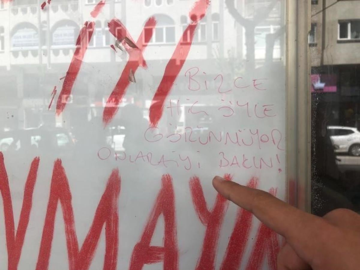 Dükkan camında notlarla gerçekleştirilen ilginç tartışma dikkat çekti.