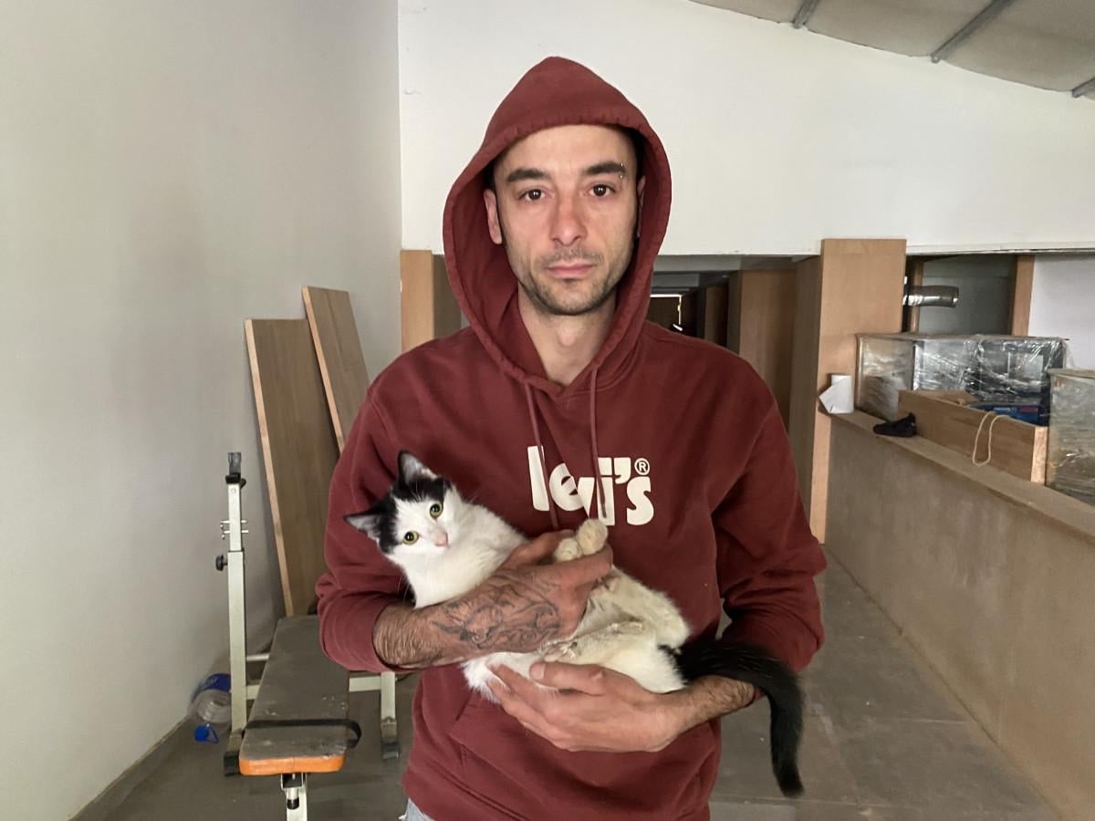 Ben bu 3 kediyi parktan kurtardım, sahiplendim. Burada besliyorum, güvendeler. Temiz mamaları, suları, yatakları var. Kedi yuvası da bulunuyor. İnsanlar kedileri burada tadilat halindeki bir dükkanda görünce onları kötü durumda zannediyorlar. Aslında durumları gayet iyi. Kedilerden 1'ini köpek saldırısından kurtardık. Diğerini çöp arasında buldum, kötü durumdaydı ve her yeri iltihaplıydı. Bakımlarını kendim yaptım.