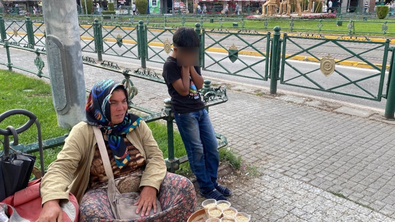 Çevrede kuş yemi satan bir kadın, ağlayan çocuğu teselli etti.