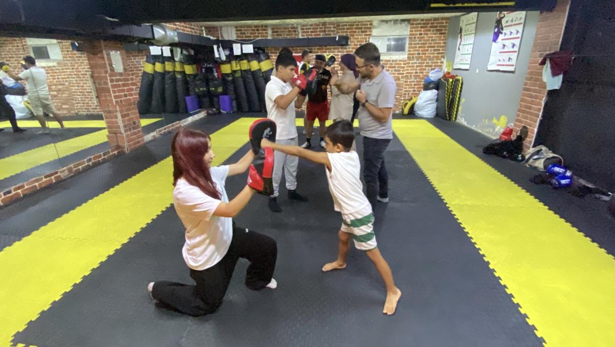 Burada hem 30 Ağustos Zafer Bayramı’nı kutlamak hem de kick-boksu tanıtmak için aileleri topladık. Aileler genellikle kick-boksu şiddet sporu olarak görüyor, ama bu tamamen yanlış. Onlara sporun nasıl bir disiplin olduğunu göstermek istedik.