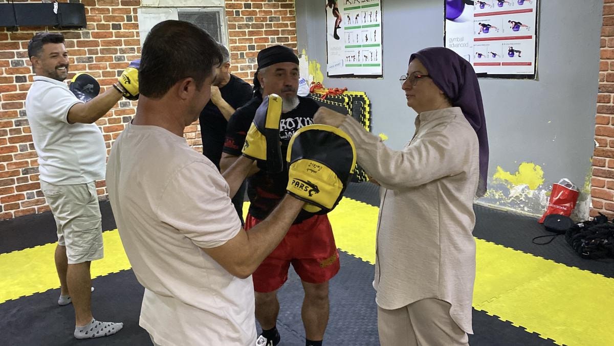 Etkinlikte aileler önce ısınma hareketleri yaptı, ardından kick-boks tekniklerini öğrendi. Bazı velilerin nefes nefese kaldığı antrenman, sporun sağlık açısından önemini bir kez daha gösterdi.