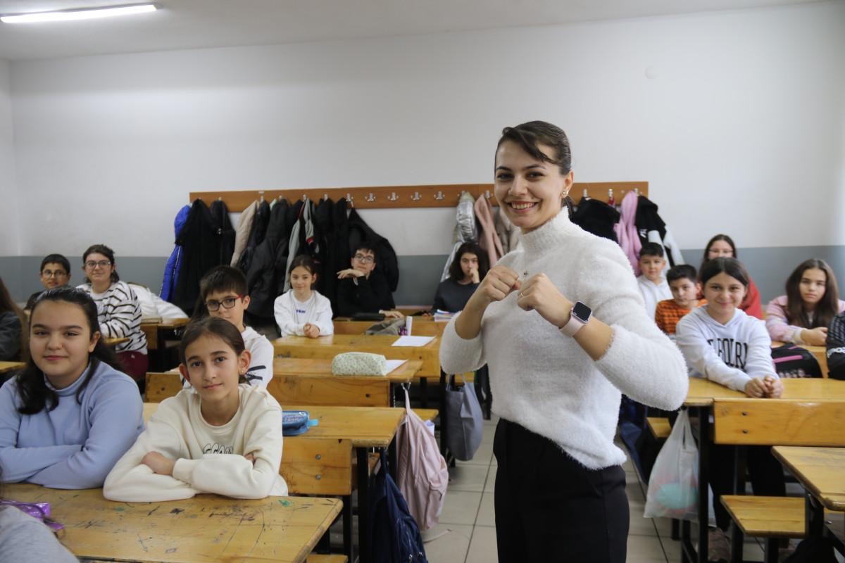 Öğrencilerin tekvandoya ve milli sporcu olmaya merakının arttığını belirten beden eğitimi öğretmeni Gülsena Karakuyulu, “Öncelikle ilk amacım öğrencilerimi psikomotor yönden olarak hayata daha rahat adapte olabilecek şekilde bedensel fonksiyonlarını yükseltmek için ders işliyorum diyebilirim.
