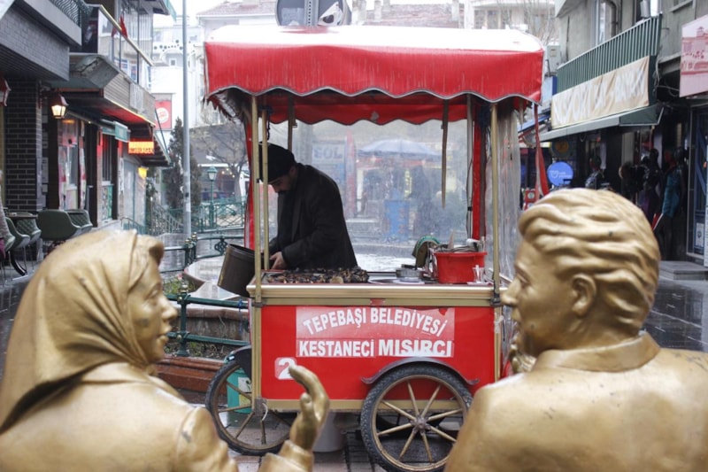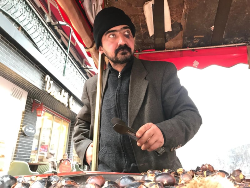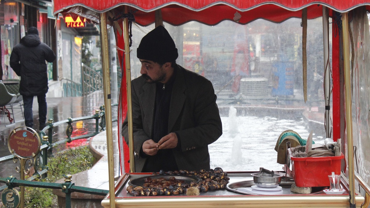 Eskişehir'in Tepebaşı ilçesinde kestane satışı yapan zihinsel engelli Cengiz Samurah, epilepsi krizi geçirip hastaneye kaldırılmasına rağmen kararlılıkla işinin başında duruyor.