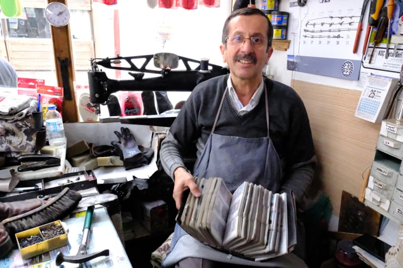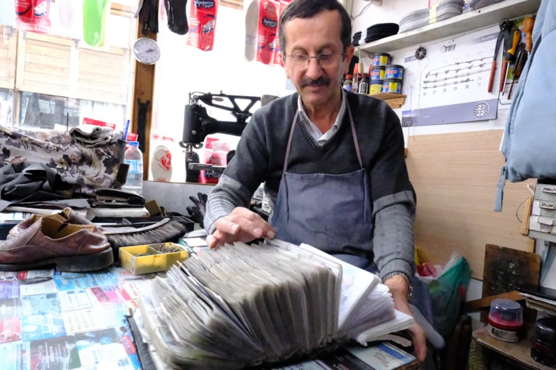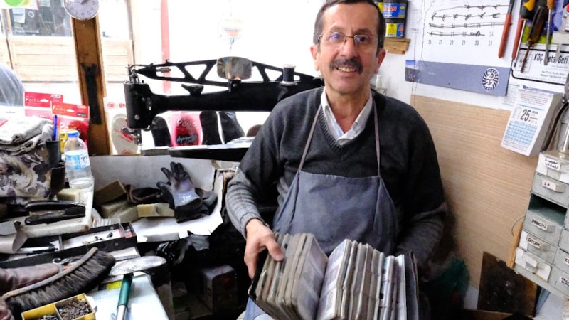 47 yıldır ayakkabı tamirciliği yapan Halit Peker’in ilginç fotoğraf biriktirme hobisi dikkat çekiyor.