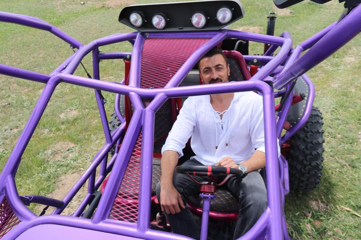 Aracını mora boyayan ve kaynağından koltuğuna kadar bütün aksamları eliyle yapan Fatih Erdoğan, arazide deneme sürüşleri yaptı.