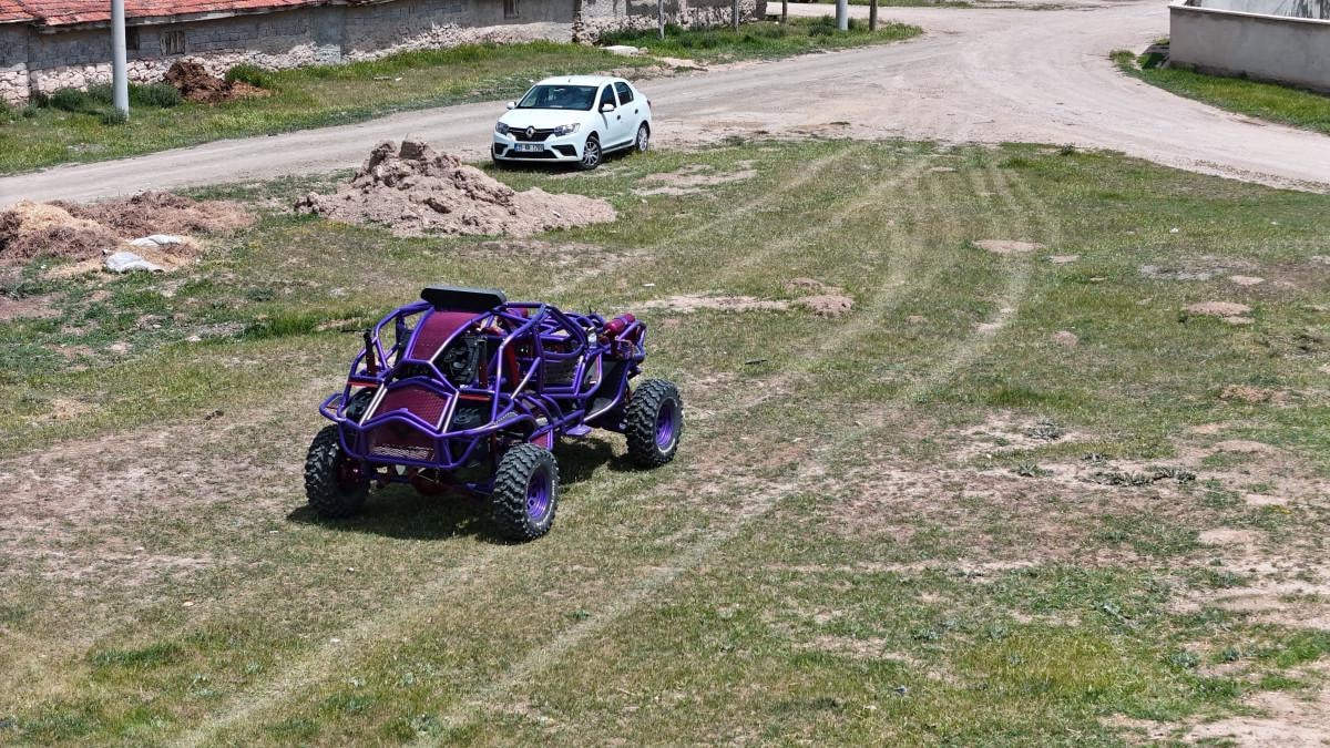 Bu aracı bir filmden esinlenerek yaptık. Daha önce arkadaşlarım yapmaya çalışmış, ama yeterli tecrübeleri olmadığı için bana teklif ettiler, "Yapar mısın?" diye. Ben de boş zamanlarımda yaparım dedim. Toplamda 13 ayda bitti araç. Her parçası tek tek elle şekillendirildi, düzeltildi, kaynaklandı. Oturakları bile kendimiz yaptık. Hiçbir şeye para vermedik, tamamen el işçiliği. 3 bin 500 motor kullanıldı. Güç konusunda bir sıkıntısı yok.