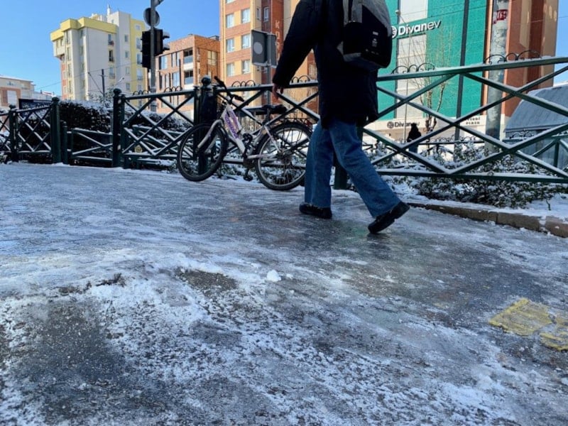 Sabah saatlerinde dışarı çıkmak isteyen bölge halkı da, yağış ve soğuğun birleşmesiyle yollarda oluşan buzlanmalara denk geldi.