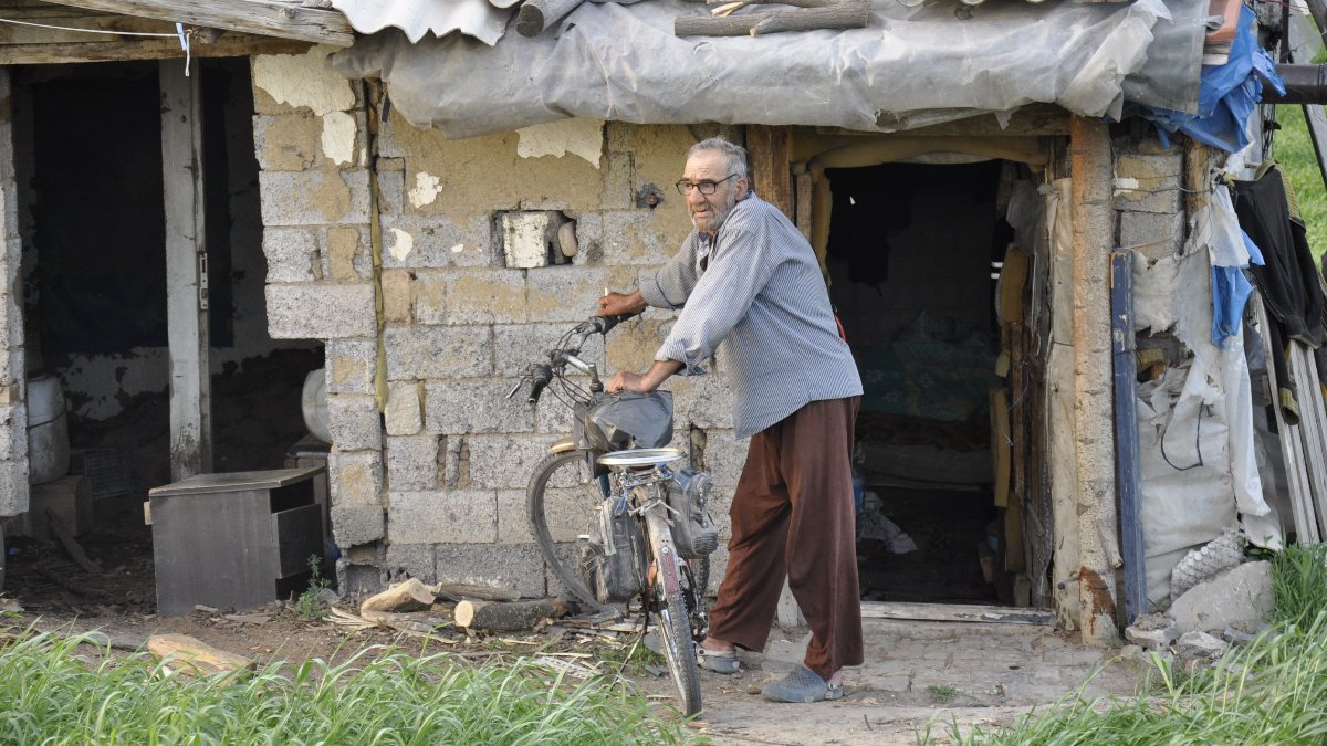Ev kirasını ödeme gücü olmadığından bir tarla ortasında bulunan barakaya yerleşen 62 yaşındaki adam, emanet bulduğu bisiklet ile şehir merkezine zaman zaman geliyor.