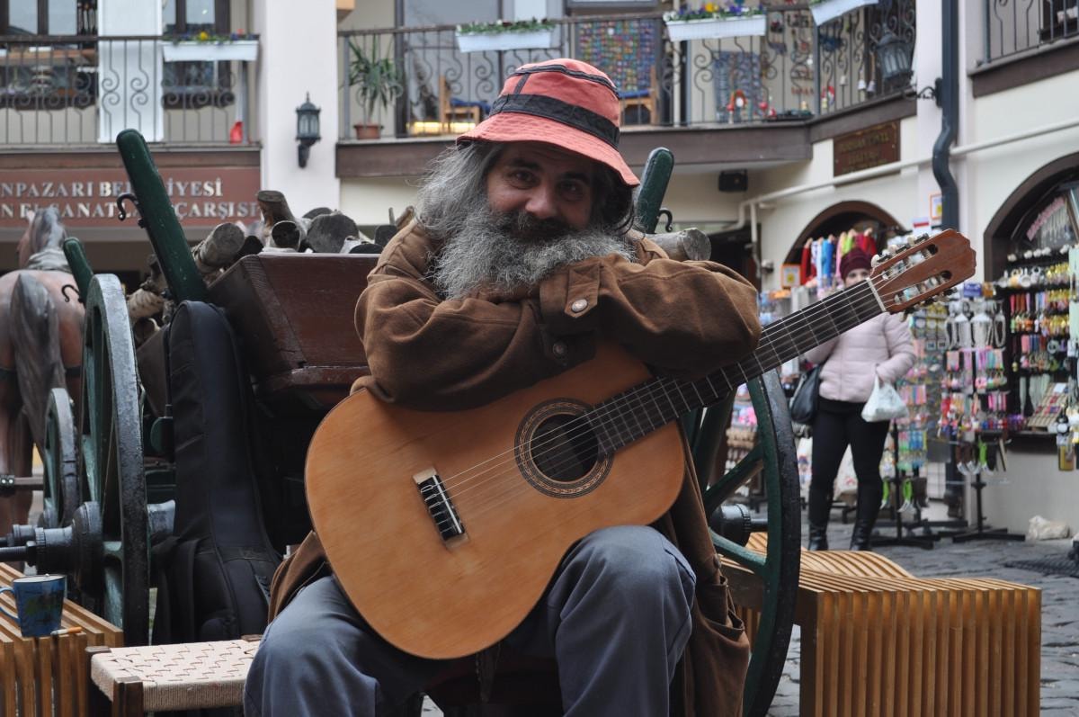 Kaza sonrası bana Eskişehir tavsiye edildi, buranın nem oranı düşük olduğu için havasının suyunun bana iyi geleceği söylendi. Sonrasında buraya yerleştim. Bir yandan da yaşamımı idame ettirebilmek için bir gelir elde etmem gerekiyordu. Öyle olunca burada sokak müzisyenliğine başladım. Odunpazarı Belediyesi ve Odunpazarı Kent Konseyi bana bu noktayı tavsiye etti. Ben de yaklaşık 12 yıldır buradayım ve o zamandan beri yerel ve uluslararası turizme hizmet ediyorum. Buraya Türkiye'nin her yerinden insanlar geliyor.