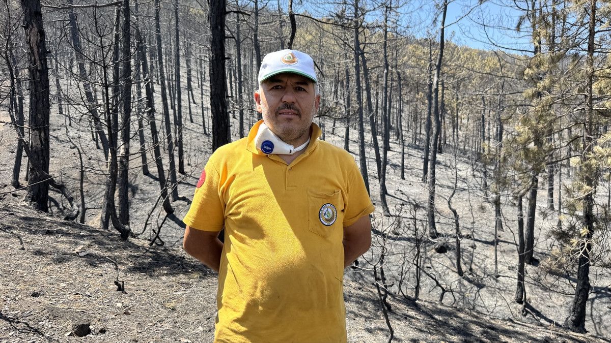 "Biz de hemen aracımıza binerek buraya intikal ettik. Ayrıca Afyonkarahisar'dan iş makineleri de geldi. Yangın mahalline ilk geldiğimizde burada yol yoktu. Bölge Müdürümüz dozerle şerit açtırdı. Arazözlerimizle gelip yangına müdahale ettik. Yangın, örtü yangını olarak devam ediyordu."
