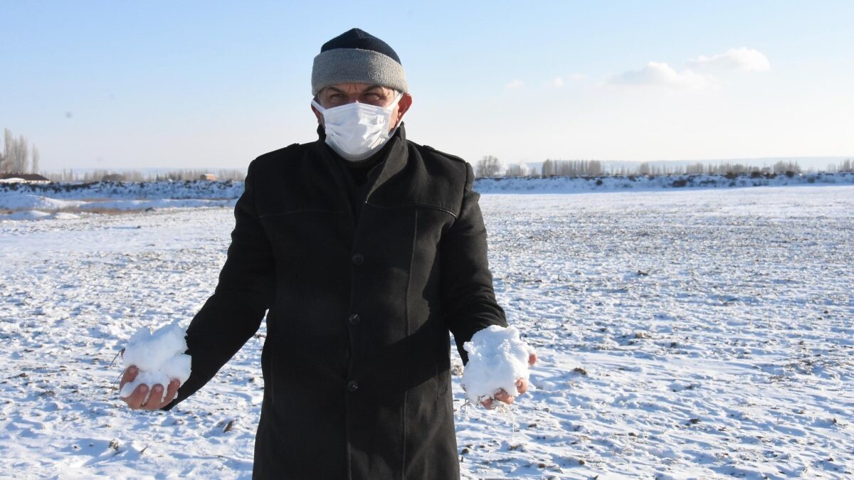 Eğimli ya da yüksek olan yerlerde hiçbir şekilde kar ya da yağmur suyu durmayacaktı. Şu anda gördüğünüz gibi ovamızın her yeri adeta bembeyaz. Hava sıcaklığı sıfırın altında 5 derece olmasına rağmen güneş de çok güzel vuruyor. Hava tabii ki çok soğuk olacak, üşüyeceğiz ama bu bizim çok ihtiyacımız olan bir şey. Ne olursa olsun toprağın çalışması için bunların hepsini yaşamak zorundayız.” dedi.