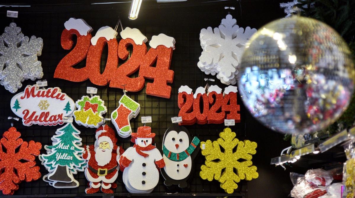 Yılbaşı kutlaması için yapay çam ağacı ve süslemesindeki yıldız, renkli küre, hediye paketleri en çok satılan ürünler arasında yer aldı.