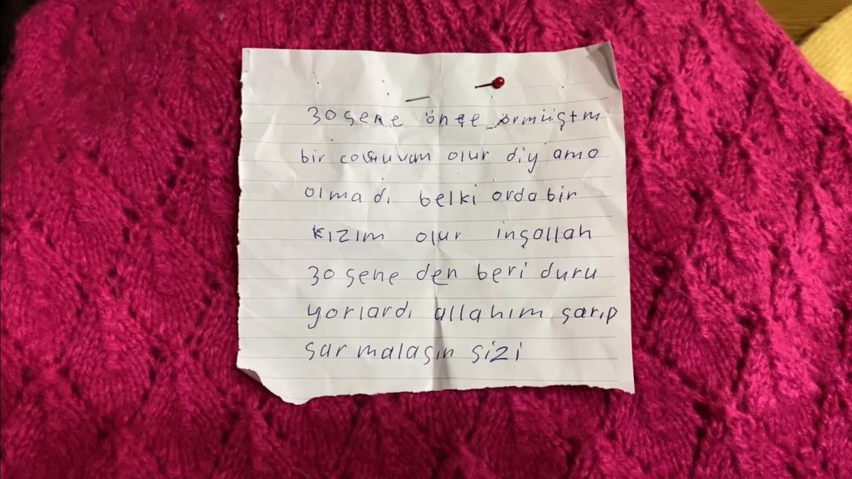 Kıyafetlerin üzerine iliştirilen kağıtta, “30 sene önce örmüştüm bir çocuğum olur diye ama olmadı. Belki orada bir kızım olur inşallah. 30 seneden beri duruyorlardı. Allah’ım sarıp sarmalasın sizi.” yazısı, notu okuyan vatandaşlara da duygu seli yaşattı.