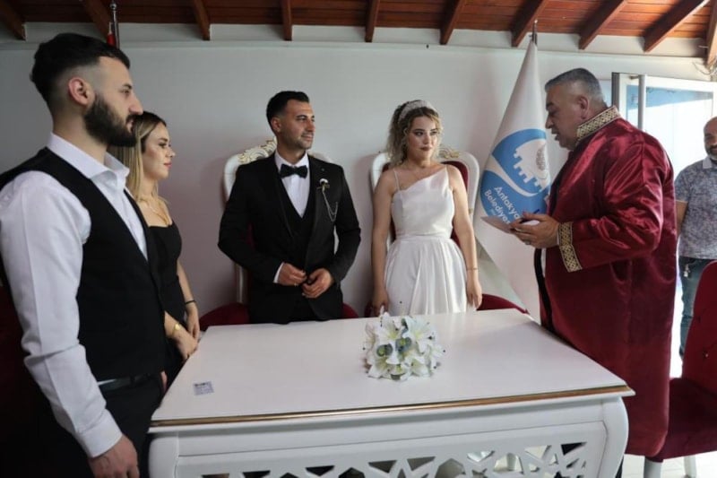 Evlilik kredisi için başvuru yapan çiftlerin sayısının çok yükseldiğini belirten nikah memuru Niyazi Yalçın, “Yaz aylarına doğru giderken 2 hafta öncesine kadar evlilik kredisi öncelik olarak çok başvuru aldık. Evlilik kredisinde yüksek bir başvuru var. Pilot bölge olarak Hatay’dan başlamaları çok güzel oldu. Çiftlerimize özellikle evlilik kredisini soruyoruz.