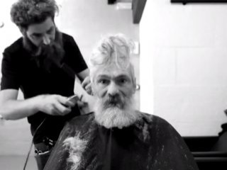 Beyazlamış saçları ile kuaföre giren adamın saçları ve sakalları kesildi ve boyandı. Ardından da kıyafetleri değiştirildi.