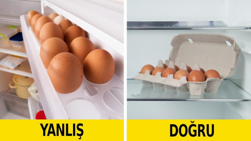 Buzdolabının kapısındaki yumurta bölmesi, buzdolabının en sıcak kısmı olduğu ve sürekli açılıp kapandığı için ideal değildir ve yumurtaların kalitesini bozabilir.