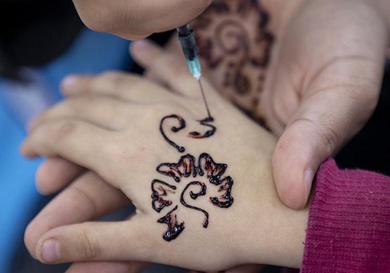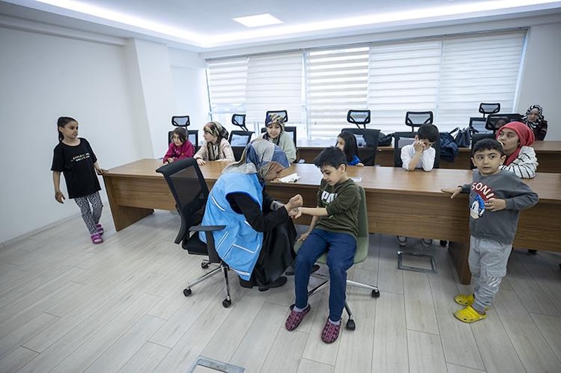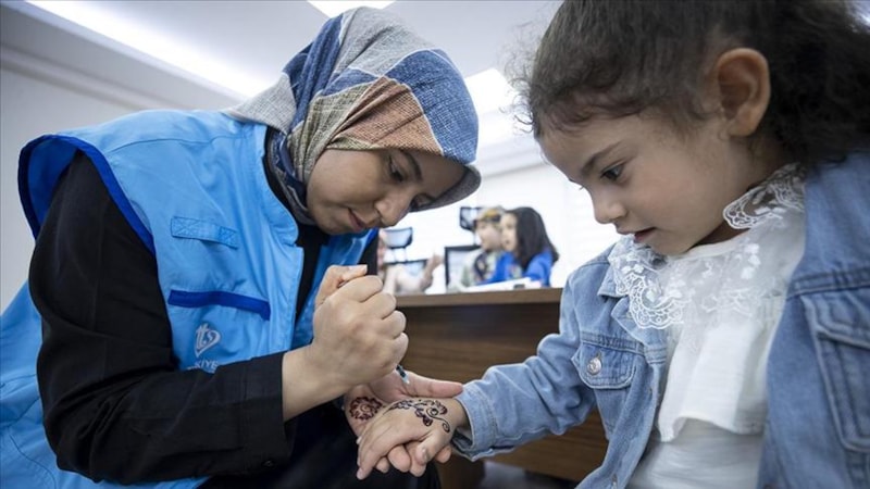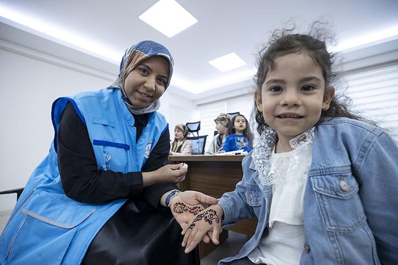 Tati, Adıyaman ve Kahramanmaraş'tan aileleriyle Ankara'ya gelip TDV'nin misafirhanesinde kalan depremzede çocukları da Fas kınasıyla sevindirdi.