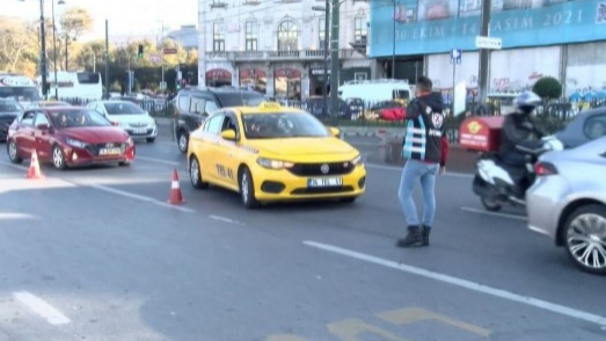 Fatih Eminönü İskelesi önünde, Sivil Trafik polis ekiplerinin taksilere yönelik denetimleri sürüyor.