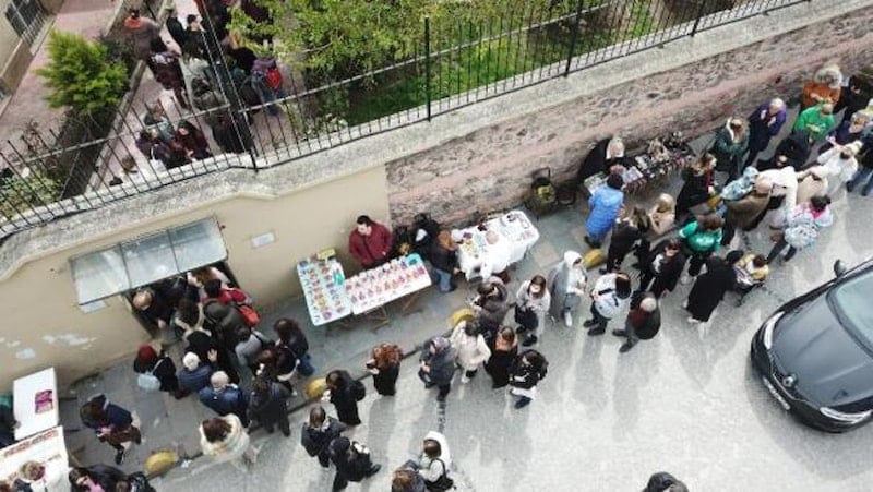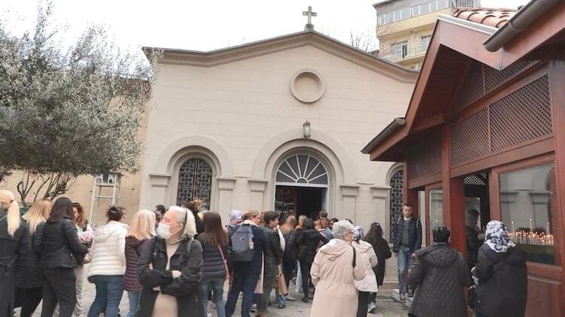 Ayın birinin hafta sonuna denk gelmesiyle sabah erken saatlerden itibaren kilisenin önüne gelenler, uzun kuyruklar oluşturdu.