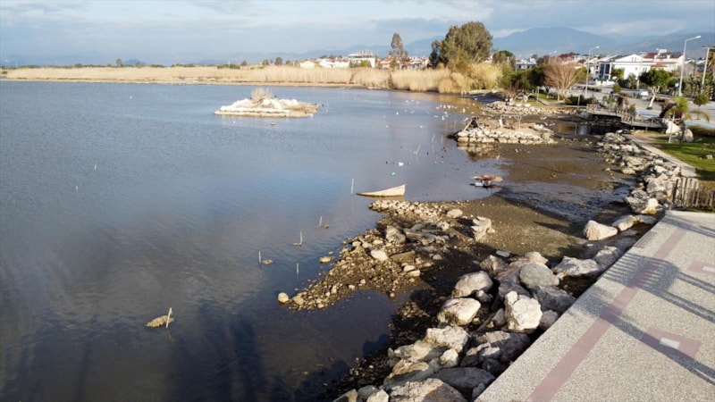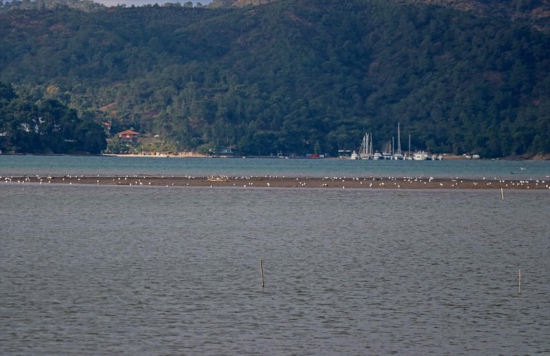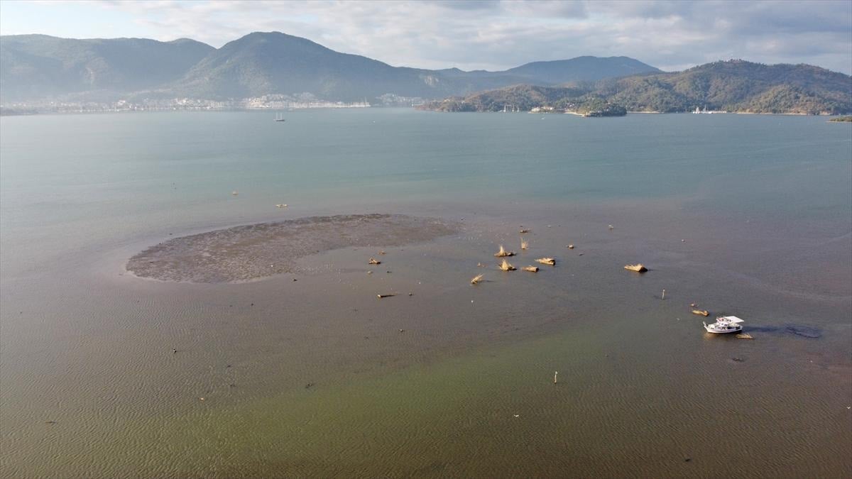 Turizmin merkezi olan yerlerden biri olan Fethiye Körfezi'nde deniz suyunun çekilmesiyle oluşan görüntü, kordona gezintiye gelenleri şaşırttı.