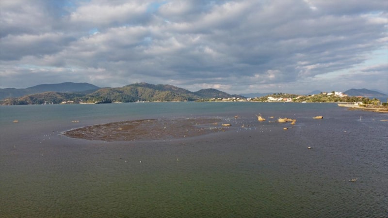 Deniz suyunun yaklaşık 10 metre çekilmesiyle, Murt Deresi'nin taşıdığı alüvyonların oluşturulduğu küçük adacık da ortaya çıktı.