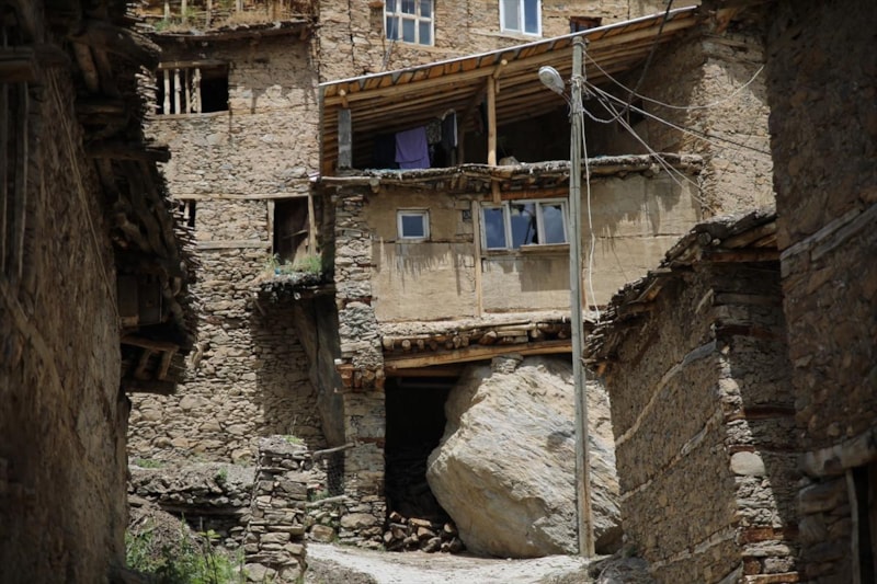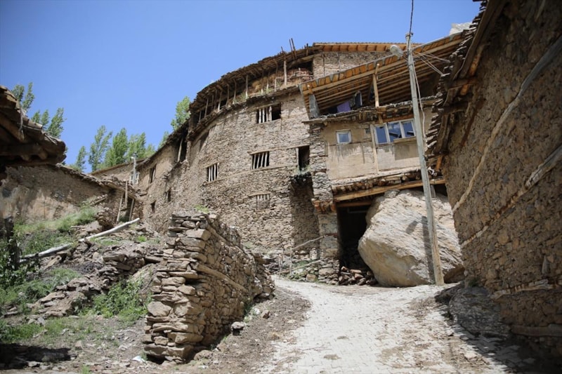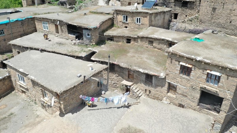 Van Gölü'nün kuzeyinde bulunan ve sarp bir arazide yer alan Hizan ilçesine bağlı Uzuntaş köyünde yıllar önce inşa edilen ve dokusunu koruyan taş evler, doğal yapılarıyla ilgi görüyor.