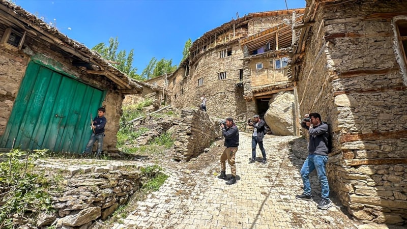 Kursiyerler, usta öğreticiler eşliğinde köydeki taş evleri, doğal yaşamı ve bölgenin eşsiz manzarasını görüntülemeye çalışıyor.
