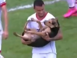 Brezilya'da oynanan Oeste - Capivariano maçında sahaya giren meraklı köpek, oradan oraya koşarak kendisini tutmaya çalışan futbolculardan kaçtı.