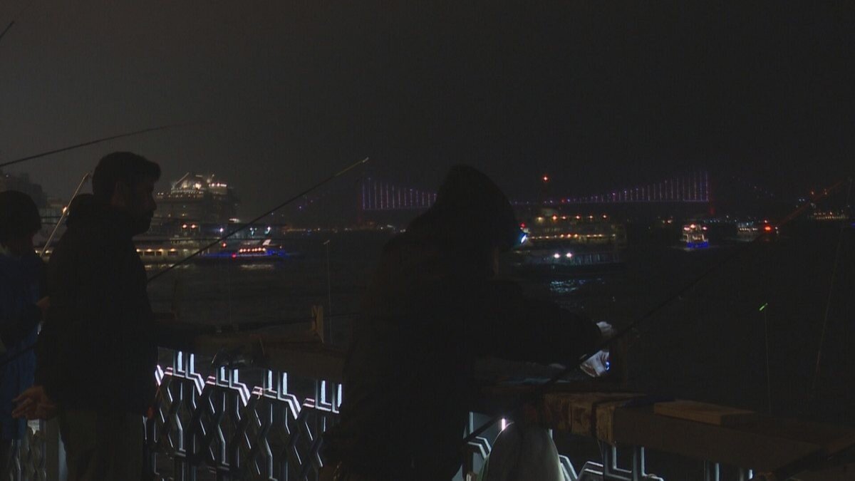 O noktalardan biri de Galata Köprüsü oldu. Yaz kış demeden köprüye gelen olta balıkçıları mesailerine sis altında devam etti.