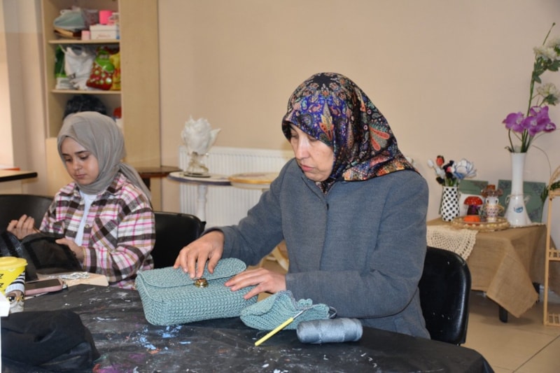 Deprem sonrası psikolojik olarak zor günler geçiren Say, komşusunun tavsiyesi üzerine Şahinbey Belediyesi Selçuklu Gençlik Merkezi’nde açılan el sanatları kursuna katıldı.